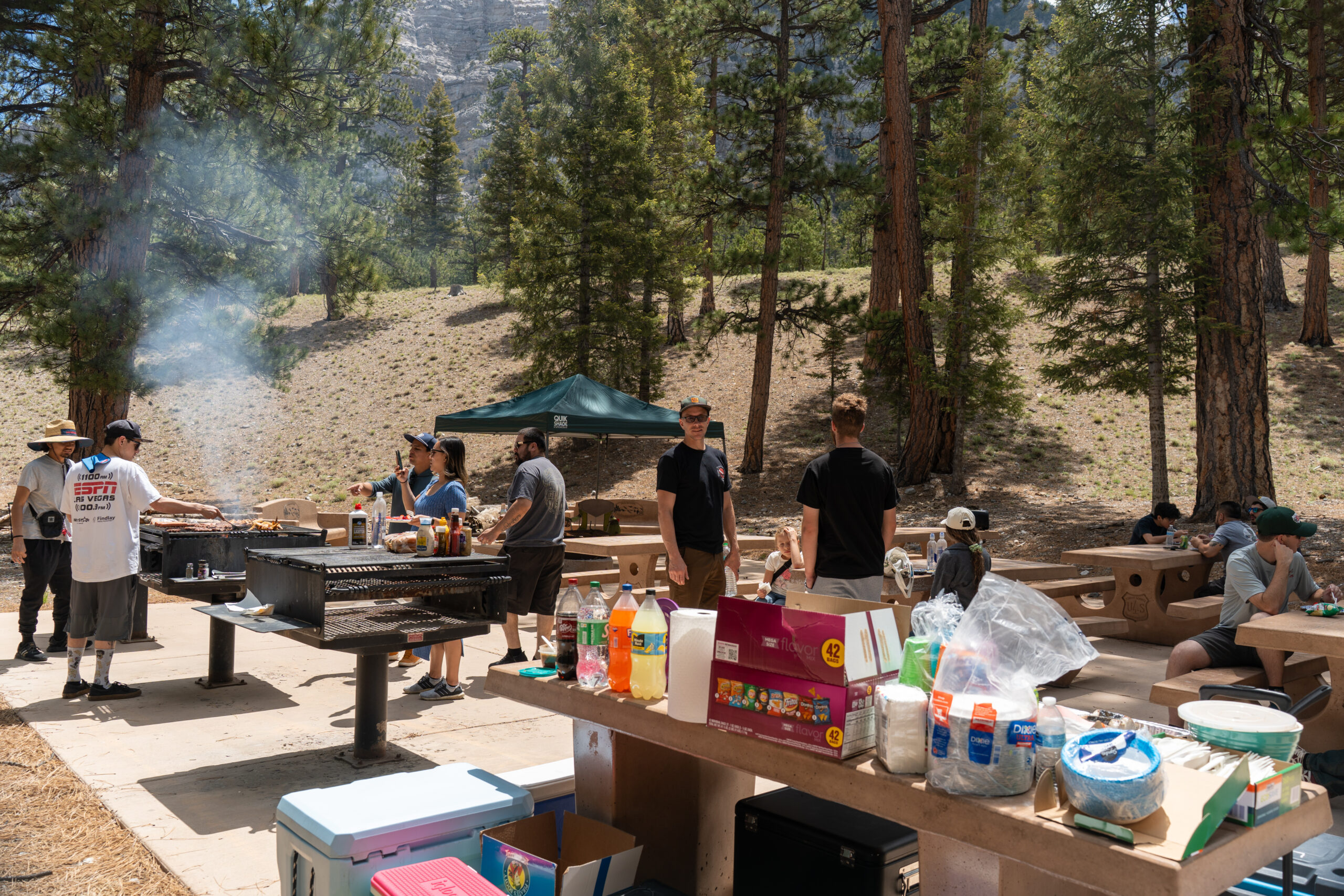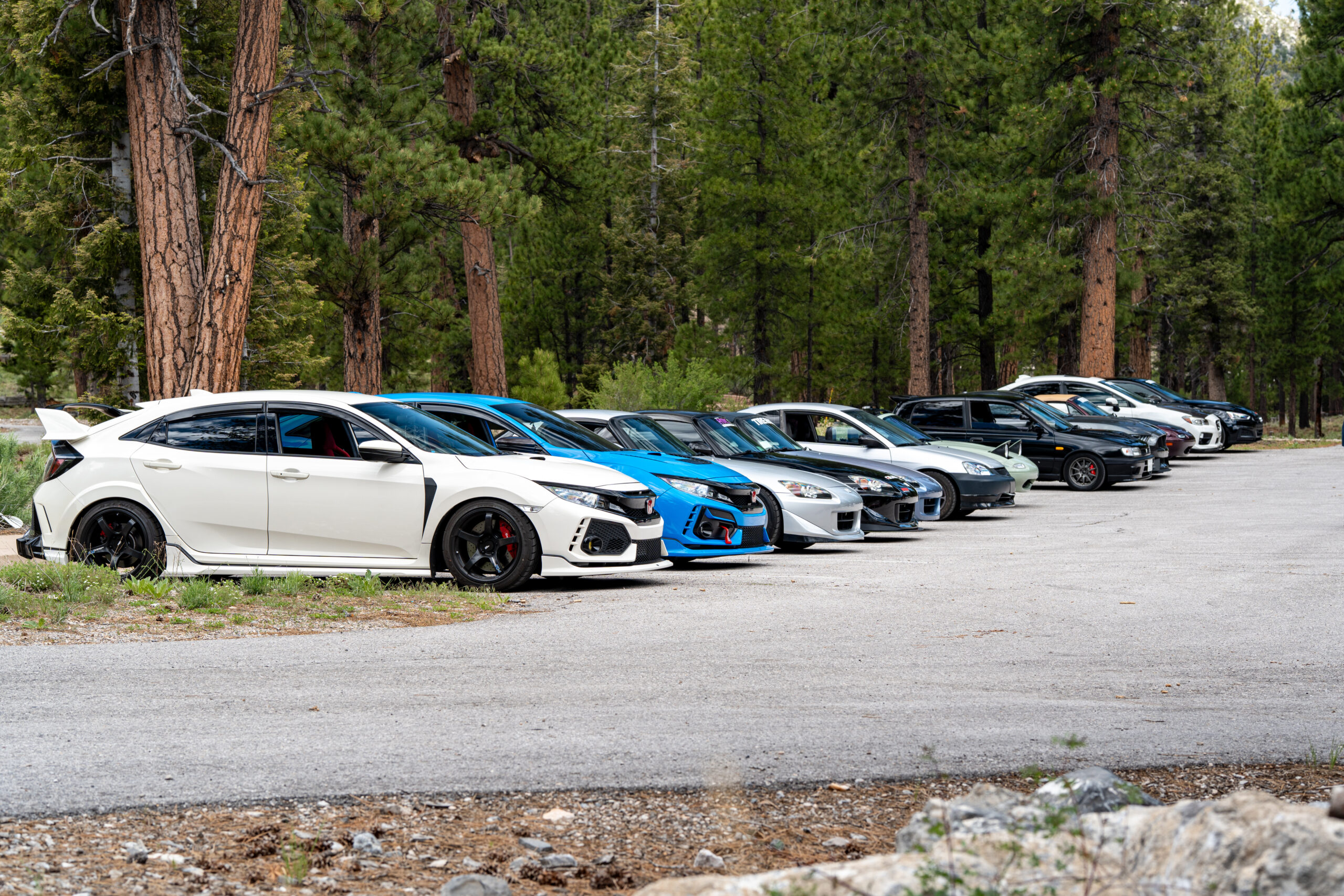 Beat the Heat 2025 was a blast! Even when meeting at 9am, the heat was creeping up on us. So we were more than happy to leave Vegas in our rearview for the afternoon and step out to the Foxtail Picnic site at Lee Canyon. It was a beautiful day in the mountains, perfect for some BBQ chicken and burgers. We had a delicious lunch spread, thanks to everyone’s potluck contributions. We also had some fun with a drone, lining up 15 cars and having the drone fly through all the interiors! (Check out our IG to see all the footage) We are already preparing for Beat the Heat 2026, so make sure you keep an eye out next summer when we do it all over again!